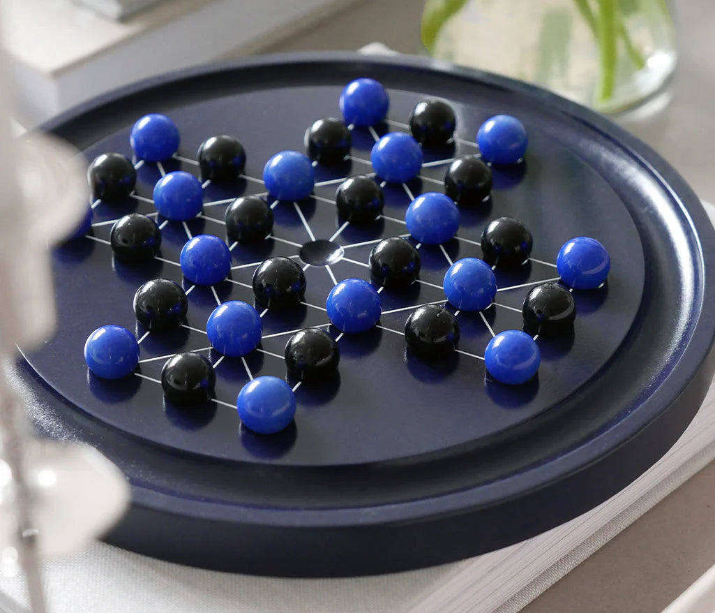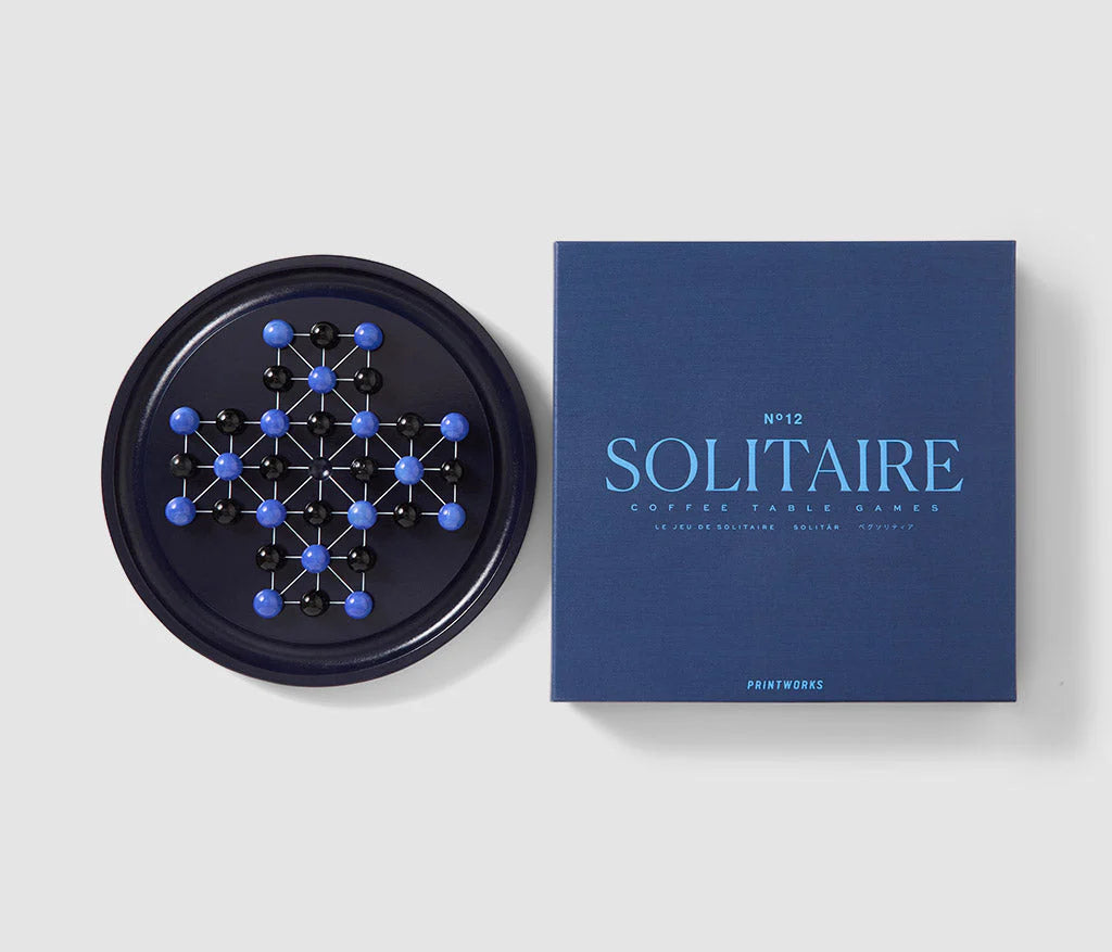 Discover our Solitaire game set, a classic game of patience and skill. This set includes a wooden board and marbles for gameplay. With easy-to-read English, French, and German instructions, it's suitable for players aged 5 and up.
