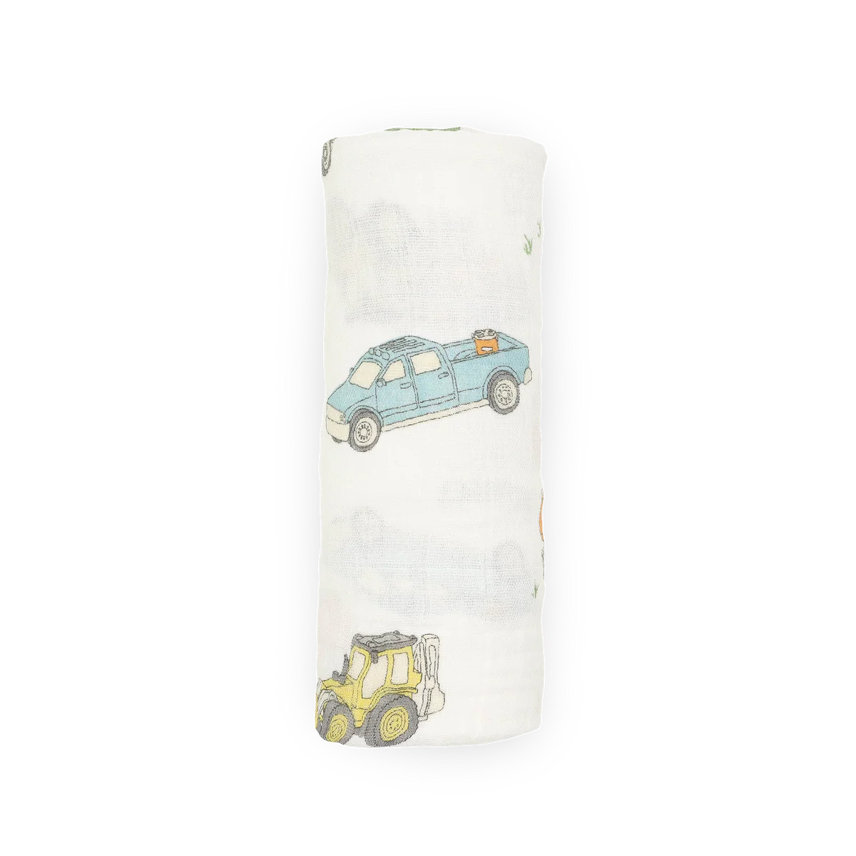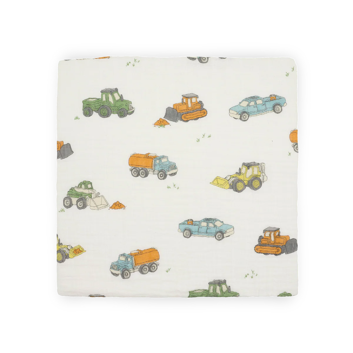 Cotton Muslin Swaddle Blanket - Work Trucks