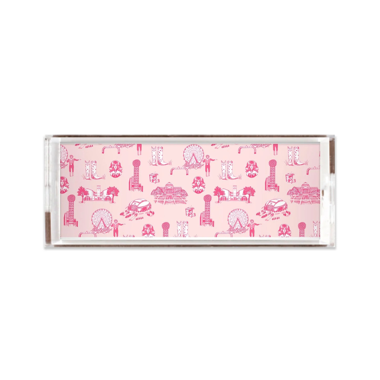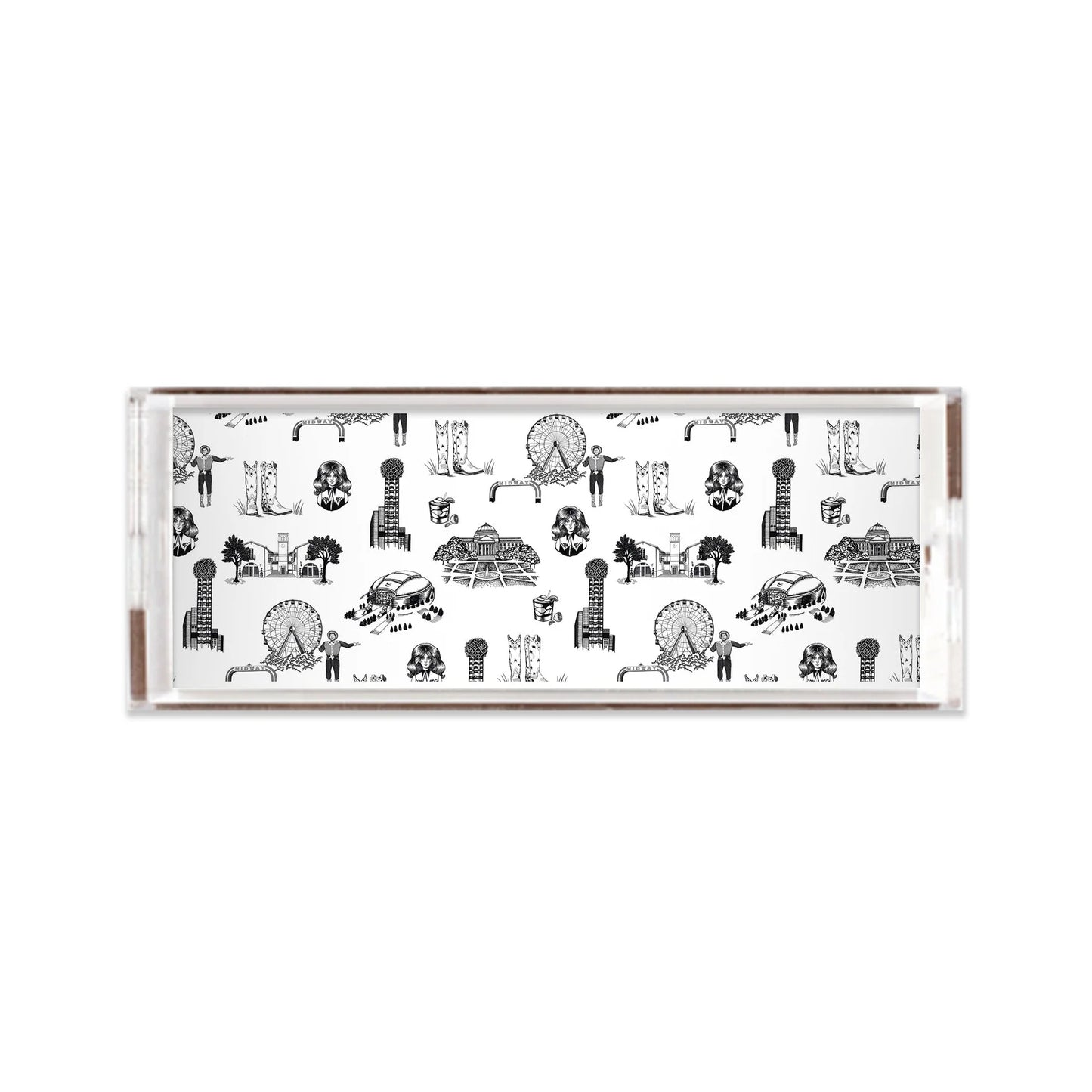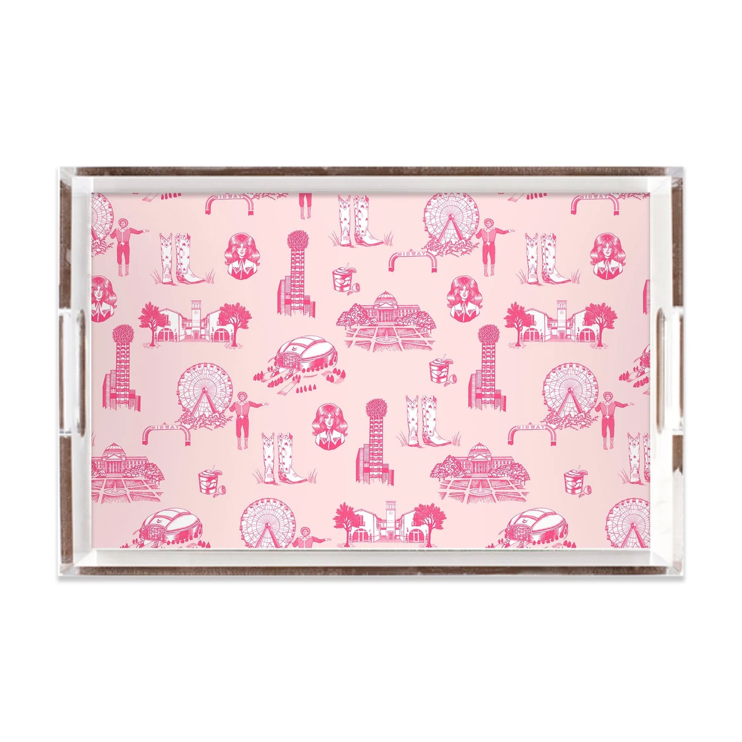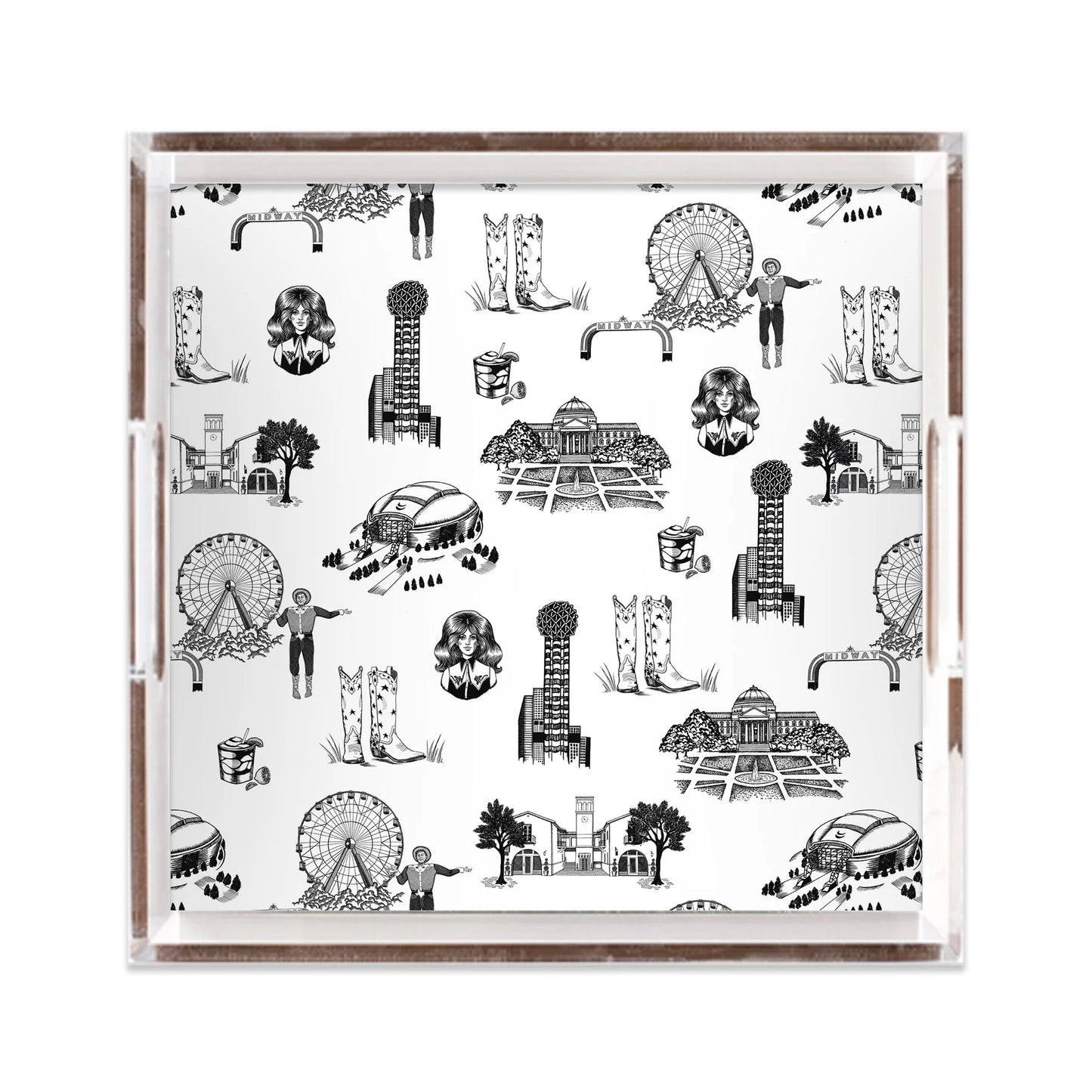 Inspired by the Big D, this hand-illustrated Dallas Toile print features Big Tex and the Texas State Fair, Jerry World, classic big Texas hair, Margretta’s Miron Crosby cowboy boots, and the iconic staple of the Dallas skyline, the Reunion Tower. Celebrate your Texan pride with this one of a kind Dallas Toile.