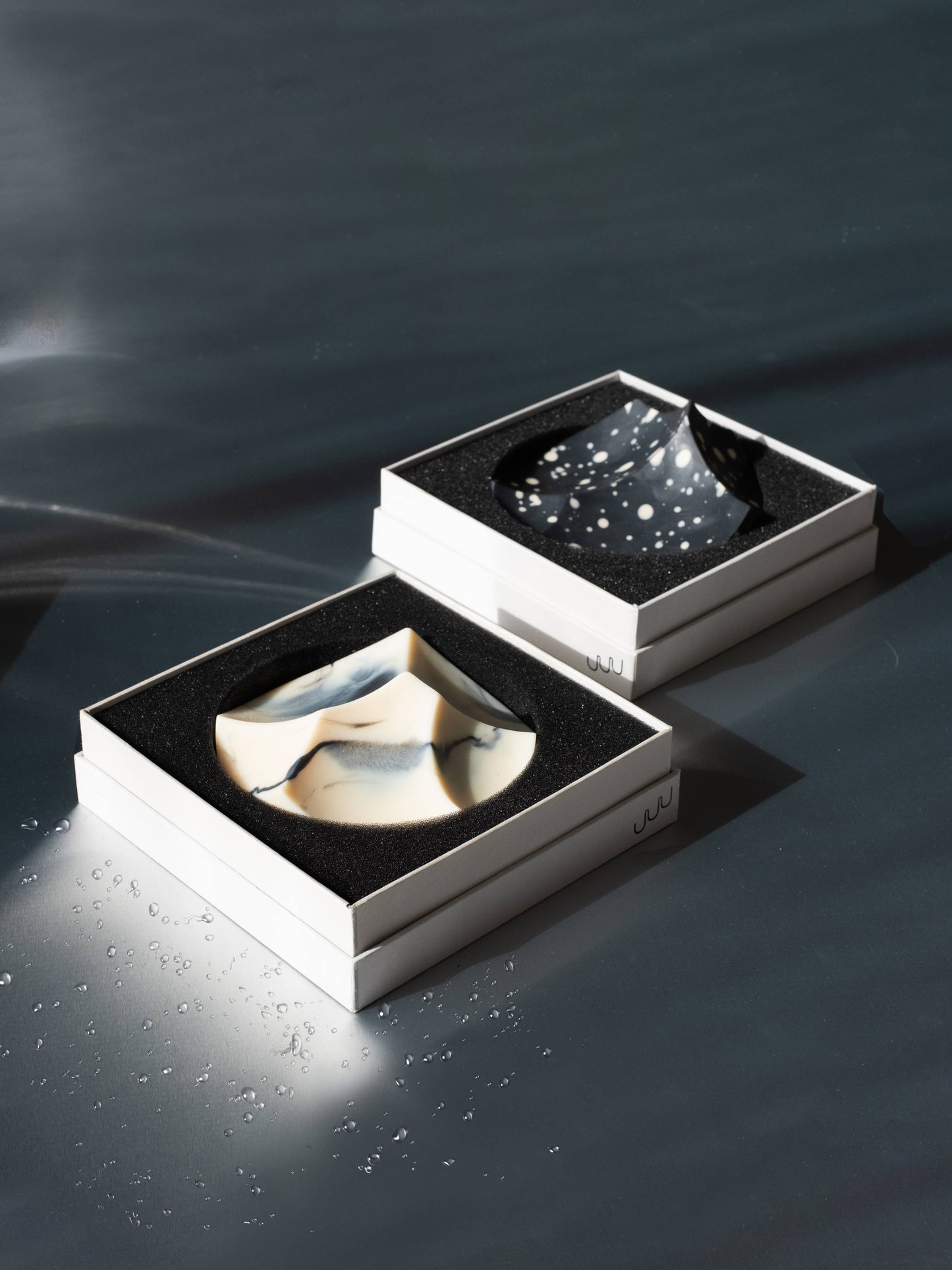 To use: Brush wet hands or cloth over the soap's surfaces to create lather, release the aromatic essential oils, and reveal the changing slopes.