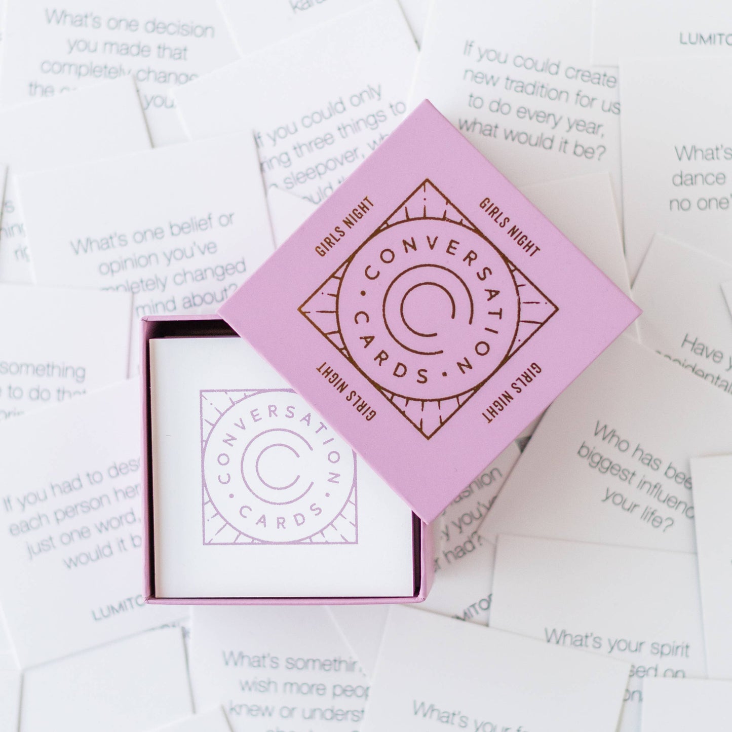 What’s your all-time favorite rom-com? Who is your shameless celebrity crush? What’s a memory that still makes you laugh every time you think of it? Your next girls’ night just got an upgrade! Forget awkward silences and same-old stories—our Conversation Cards for Girls Night are here to bring the laughs, the feels, and the kind of moments you’ll be talking about for years. With 75 fun and engaging questions, these cards are perfect for sparking deep conversations, hilarious confessions, and everything in between. Whether you’re hosting a sleepover for your 9-year-old’s crew, planning a bachelorette bash, or enjoying a cozy night in with your lifelong friends, these cards are designed to make girls’ nights unforgettable—no matter the age.