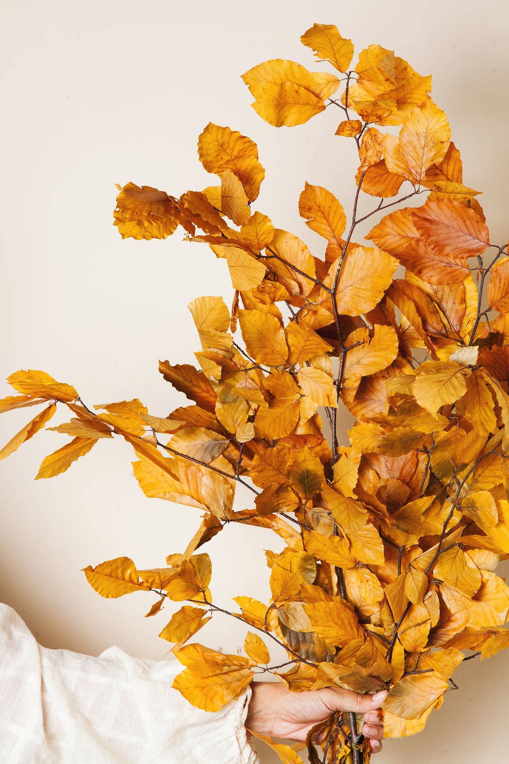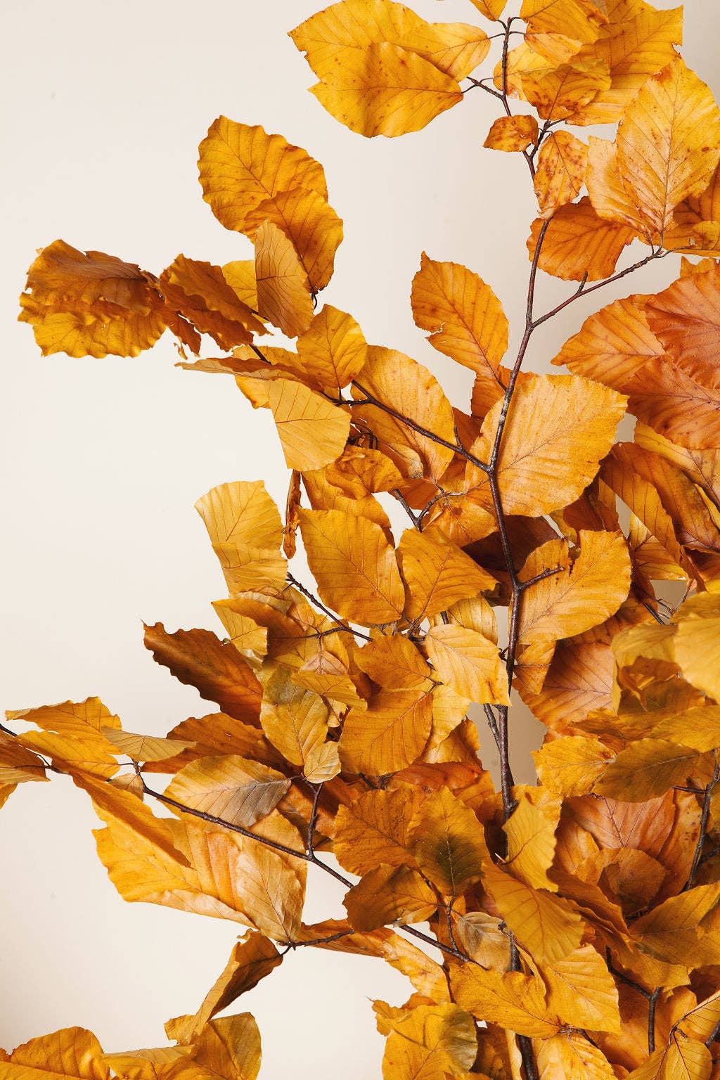 Gorgeous multi colored fall foliage in a mustard gold hue.