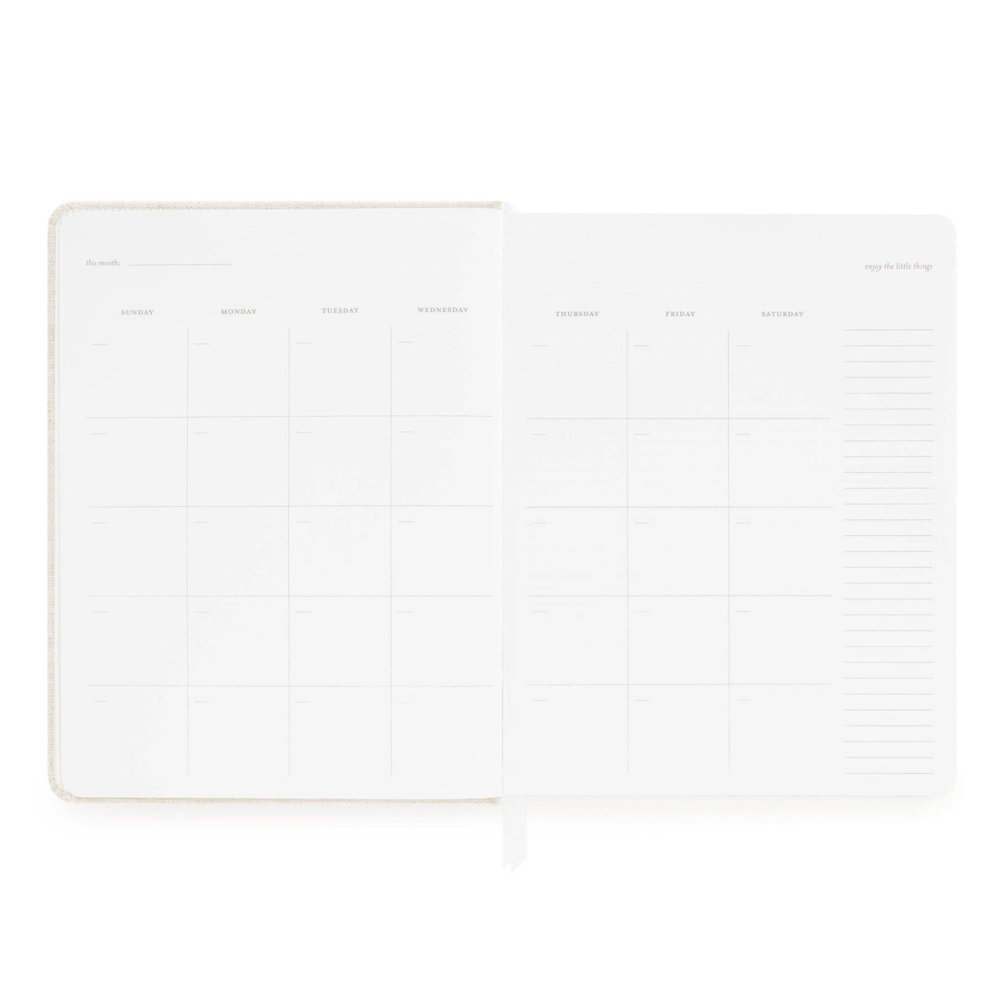 The small bound fabric planner made in a petite size to take on the go. Plan ahead with a monthly grid, weekly view, and page after page of blank space to fill.