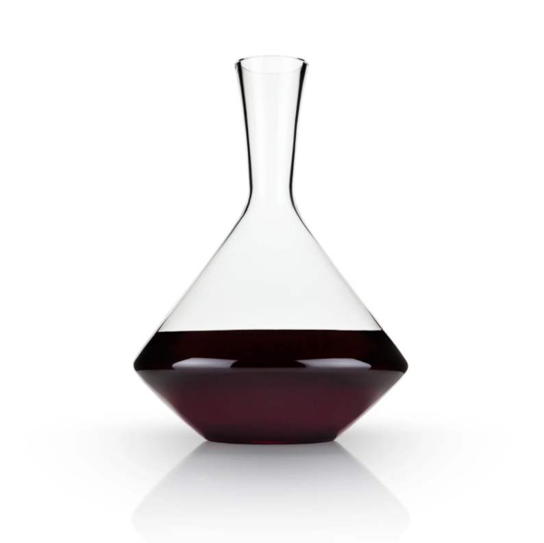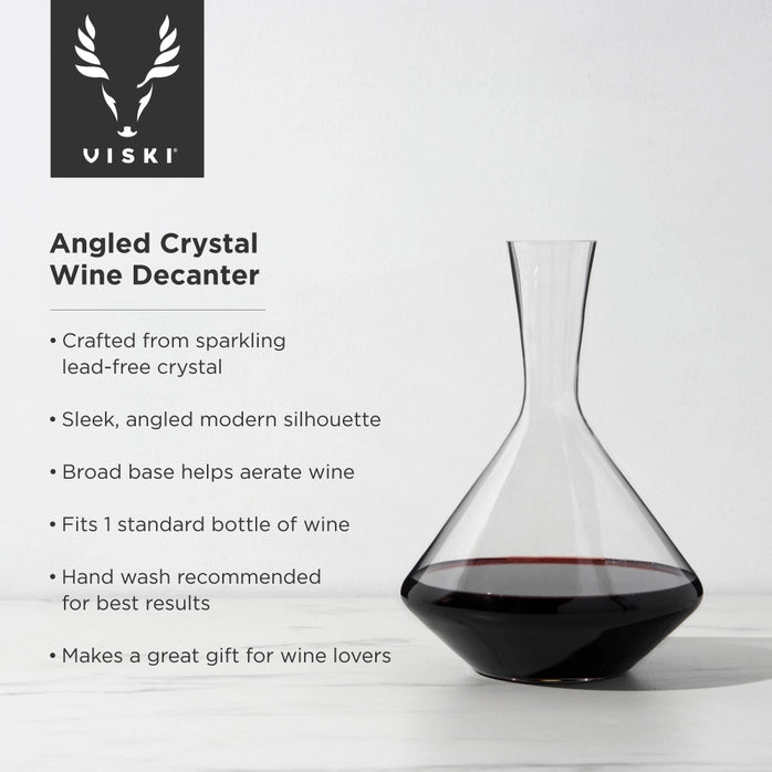 In this radiant, classically styled wine decanter, angular crystal creates a broad base for optimal aeration of one standard bottle, before slanting inward to form a slim pour spout that sends your vintage arcing smoothly into your glass.
