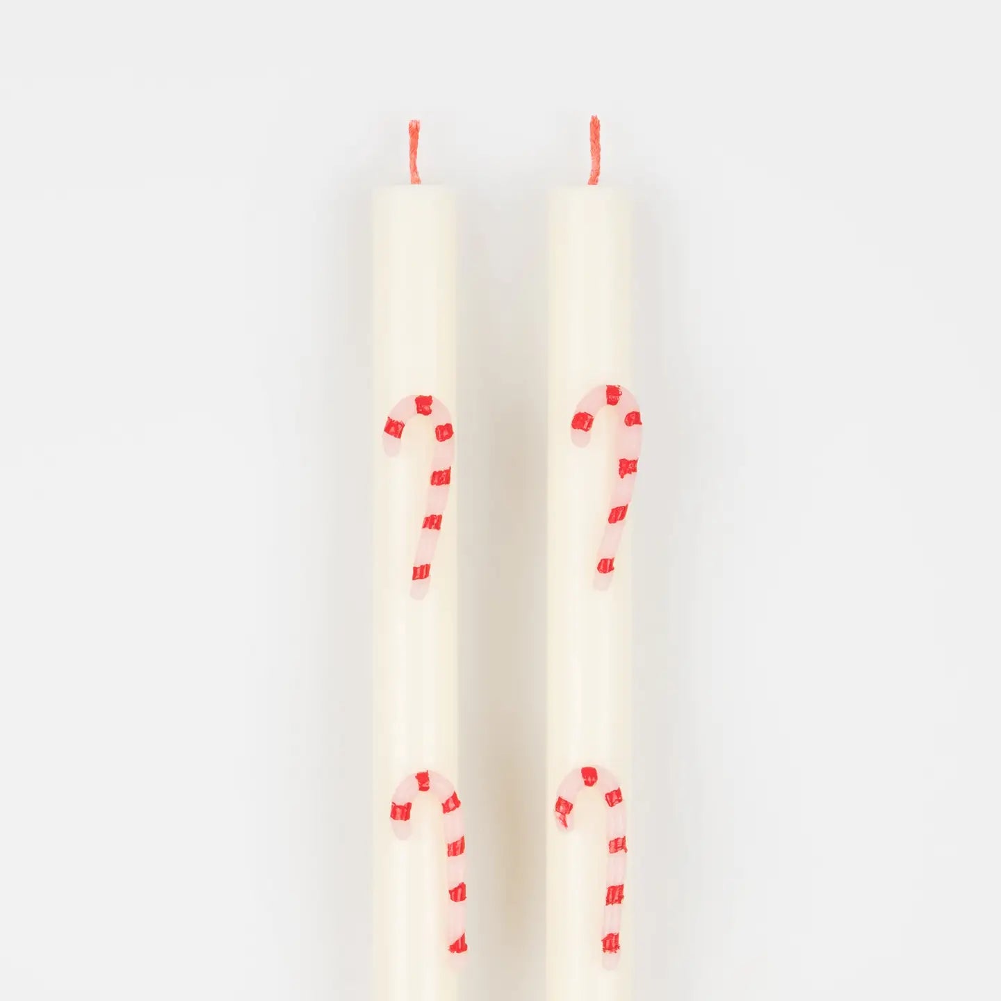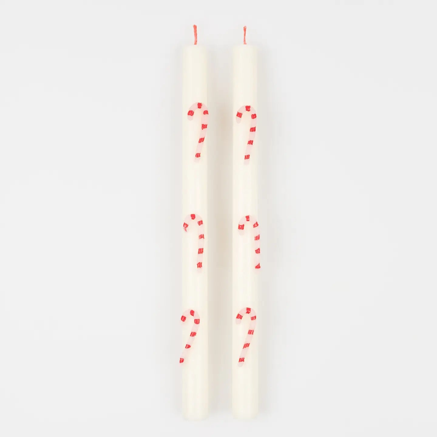 Bring festive cheer to your holiday table with these delightful Candy Cane Table Candles! This pack of two ivory pillars stands 11 inches tall, each crowned with a charming pink and red striped wax candy cane. Featuring bright red wicks and a generous 6-hour burn time, they're perfect for creating a warm, inviting glow during holiday gatherings. Unscented, so they won't compete with your favorite seasonal fragrances or holiday treats. A sweet way to add whimsical holiday spirit to any room!