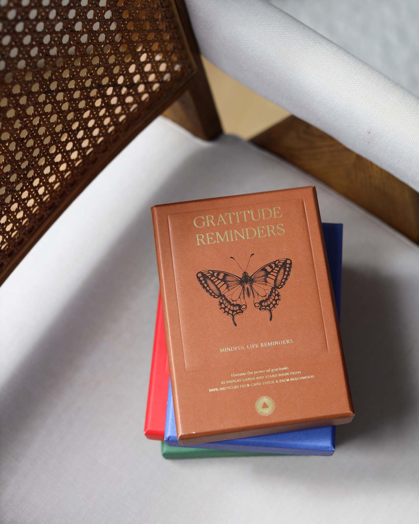 Gratitude Reminders quote cards serve as weekly reminders to appreciate the beauty in life’s ordinary moments. Each card is double-sided: on one side, you’ll find a quote to inspire a grateful heart. On the reverse, a prompt to deepen your gratitude practice.