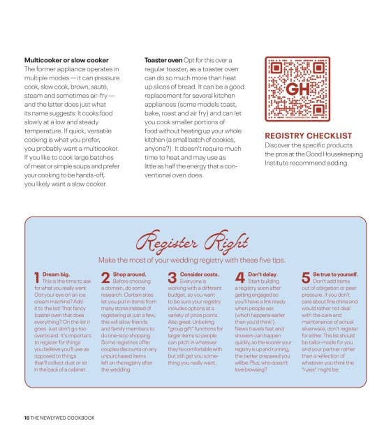 Celebrate your exciting new life together in the kitchen! This modern cookbook is ideal for newlyweds and new couples looking to whip up easy and delicious meals. With color photos of every dish and tons of kitchen know-how from the Good Housekeeping Test Kitchen experts, this couples cookbook is the perfect gift to start any pair on their lifetime culinary adventure together.
