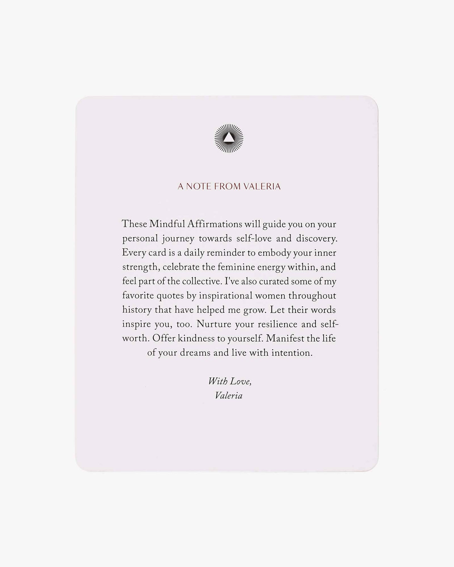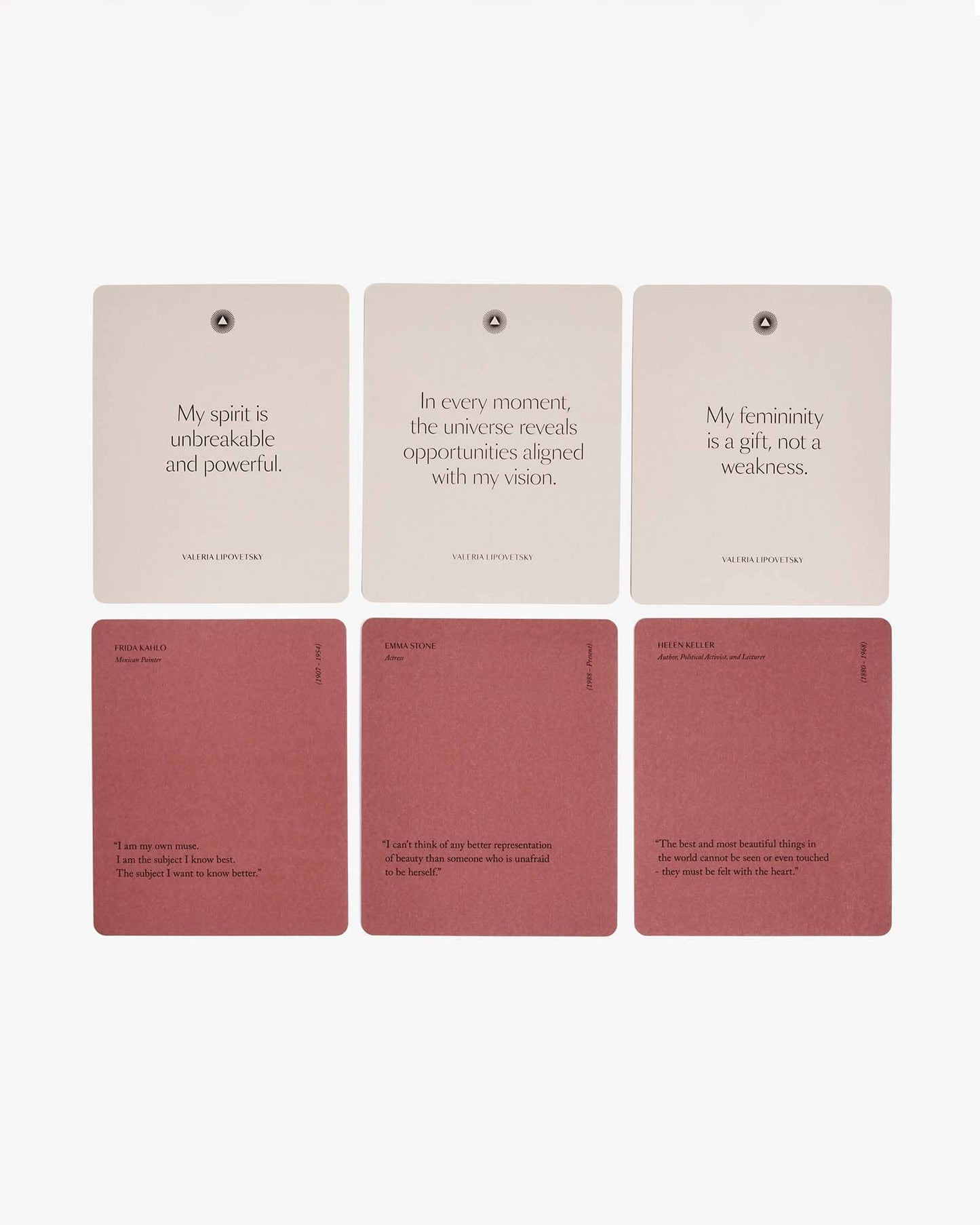 A special edition of Mindful Affirmations by Valeria Lipovetsky. Each double-sided card offers an affirmation on one side and a quote from an inspirational woman on the other, bringing together wisdom and encouragement for your daily life. Whether you use them for a quick boost in the morning or to unwind at night, these cards are a simple yet powerful tool for staying connected to your inner strength. Makes a perfect gift.