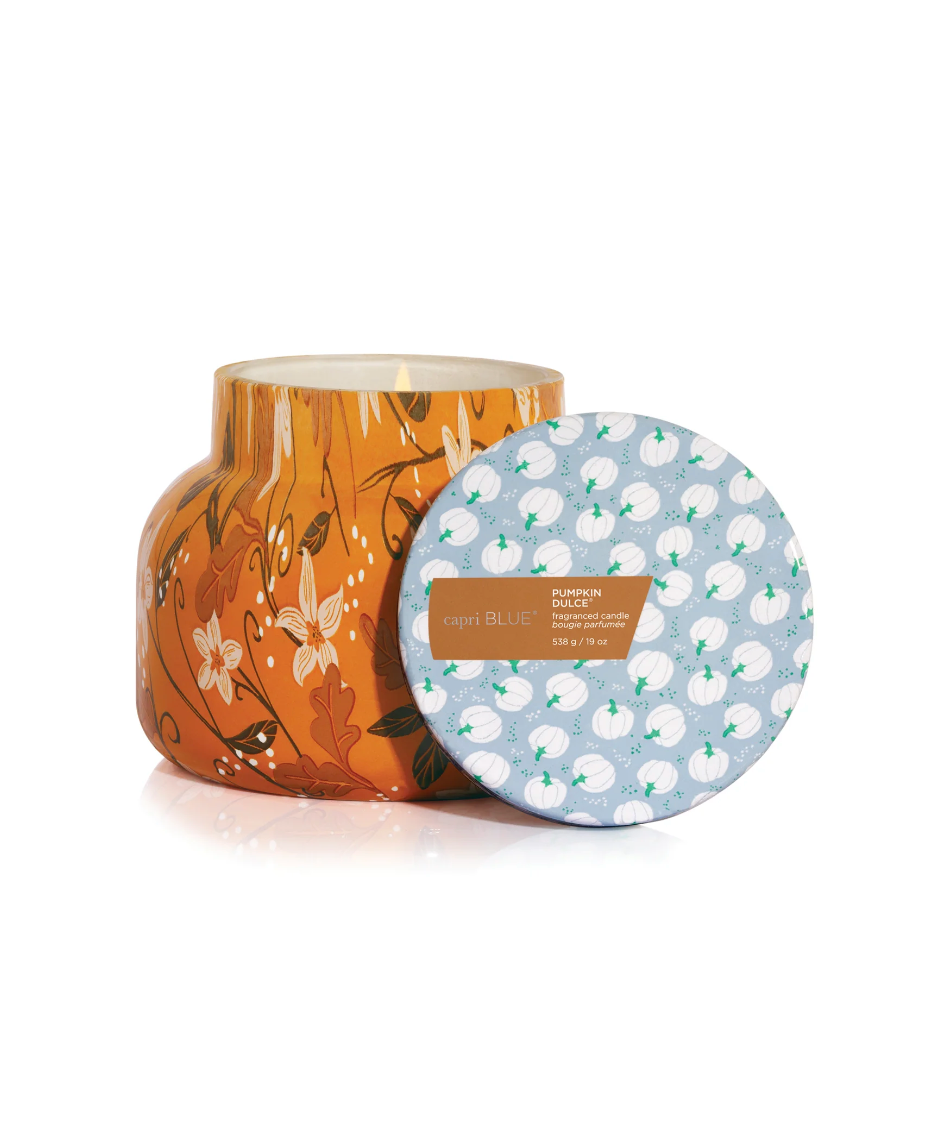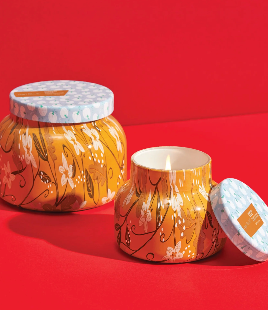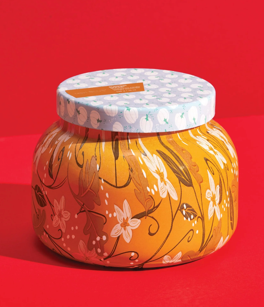 This Pumpkin Dulce Holiday Pattern Play Signature Candle is filled with gourmand notes of white pumpkin, sweet gingersnap, nutmeg and whipped vanilla. Wrapped in a floral orange design, you'll have just what you wished for this fall!