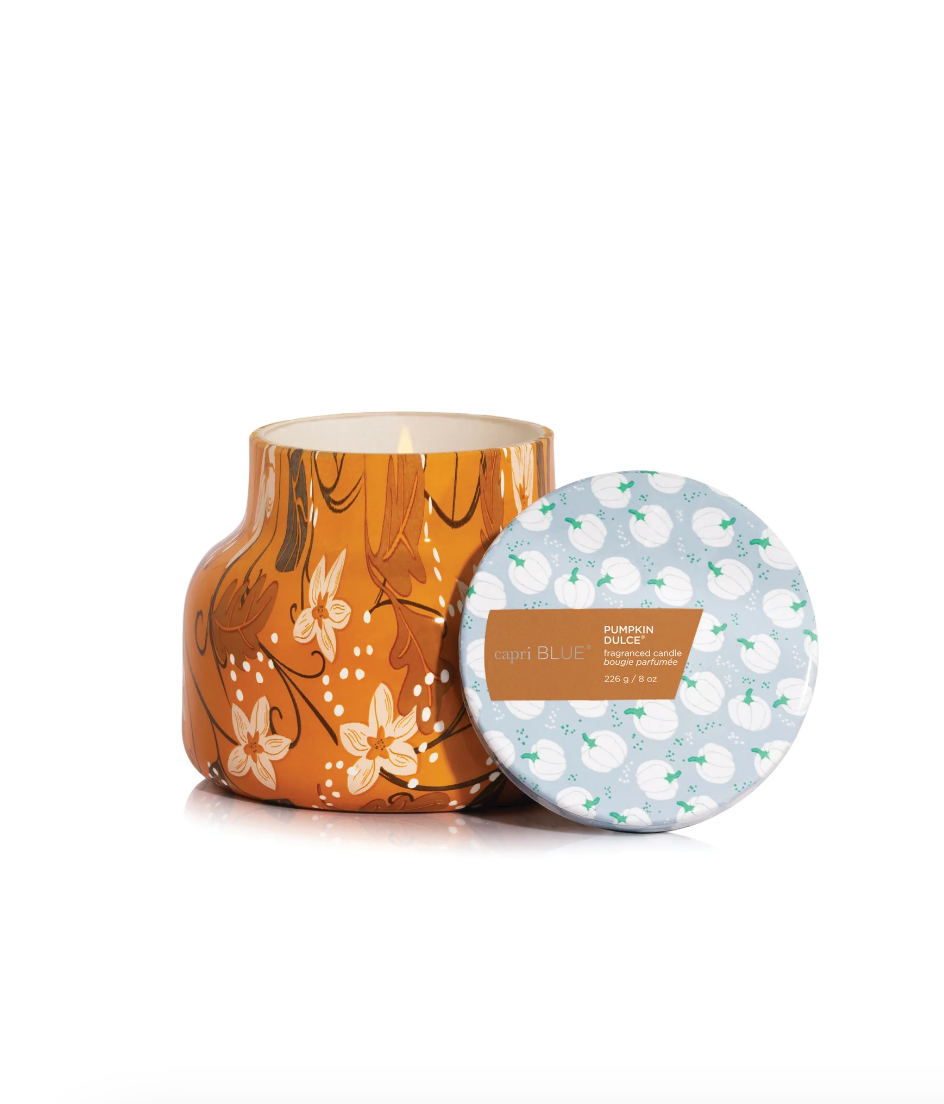 Indulge in total luxury with our Pumpkin Dulce Pattern Play Petite Jar. Capri Blue's unparalleled fragrance has been expertly crafted into a glorious work of art, making it an essential piece for any elegant living space. Let the enchanting blend of white pumpkin, gingersnap, and whipped vanilla elevate your home with sophistication and refinement this autumn and holiday season.