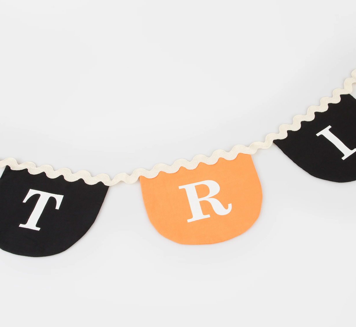 This fabulous fabric garland is a real treat! It's beautifully crafted in classic Halloween orange and black, with on-trend ric rac details – perfect to add a pop of color. Hang it on the wall or mantel, in the porch or on the party table. You can then fold it away, into the organza bag it comes with, and reuse year after year.