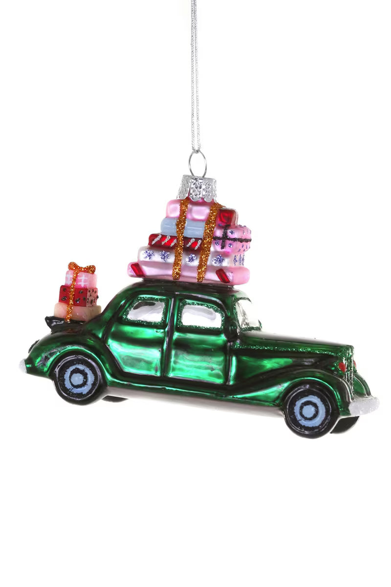 Santa In Antique Car Ornament