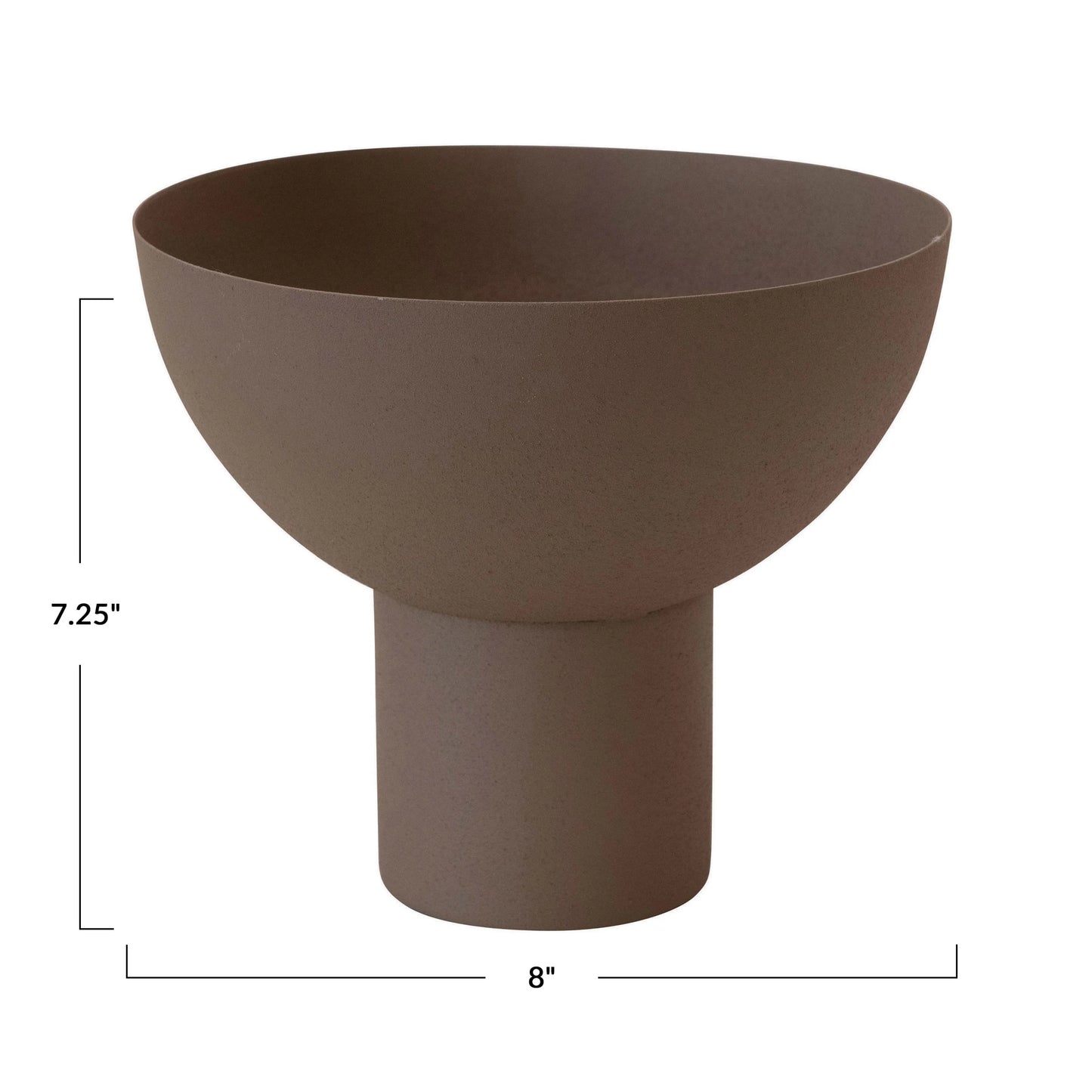 This footed bowl works great for display or serving purposes. Made out of metal and featuring a sleek taupe color, this modern bowl looks great on countertops. Perfect for storing fresh fruits or snacks, or for serving friends and family in style.