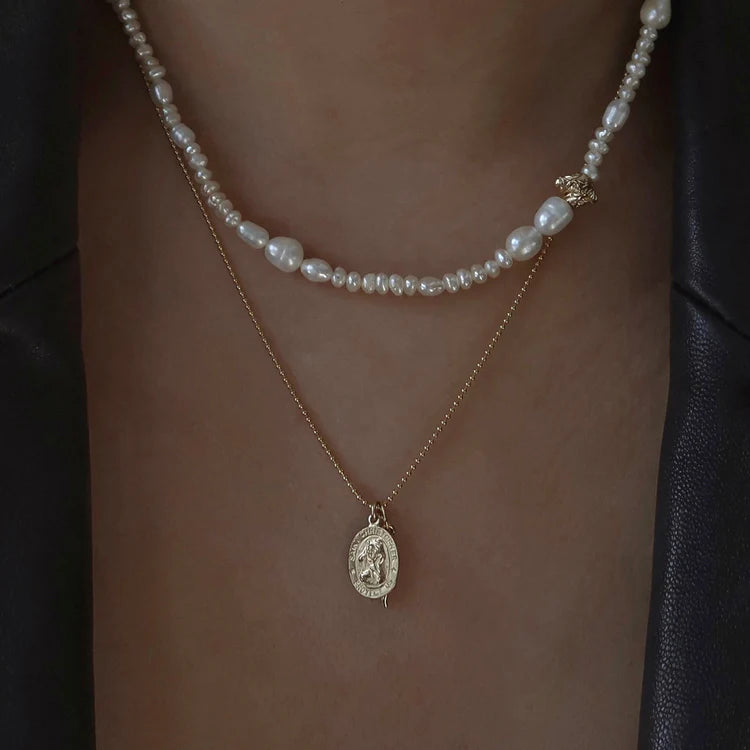 The perfect duo - our Fortuna necklace delicately strings St. Christopher - patron saint of travelers - and an Italian horn - representing safe travels and good fortune. This pendant necklace is with you for every adventure. 14k gold filled - this one stays on our necks and near our hearts at 18 inches in length.