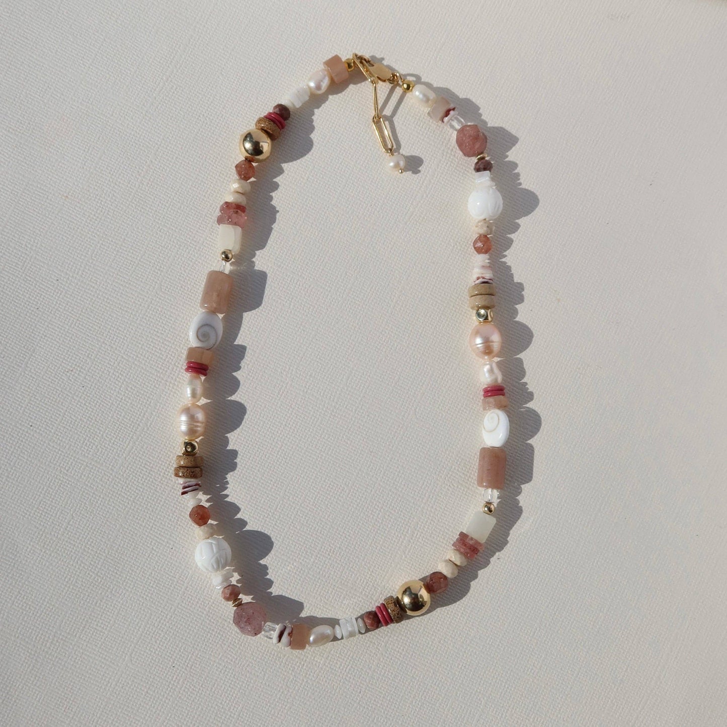 The Gigi is uniquely crafted to capture the essence of natural beauty and individuality. Each gemstone is hand selected for its vibrant color and unique patterns. From the calming tones of moonstone to the rich hues of rhodonite, every stone tells its own story, making each necklace a one-of-a-kind treasure.