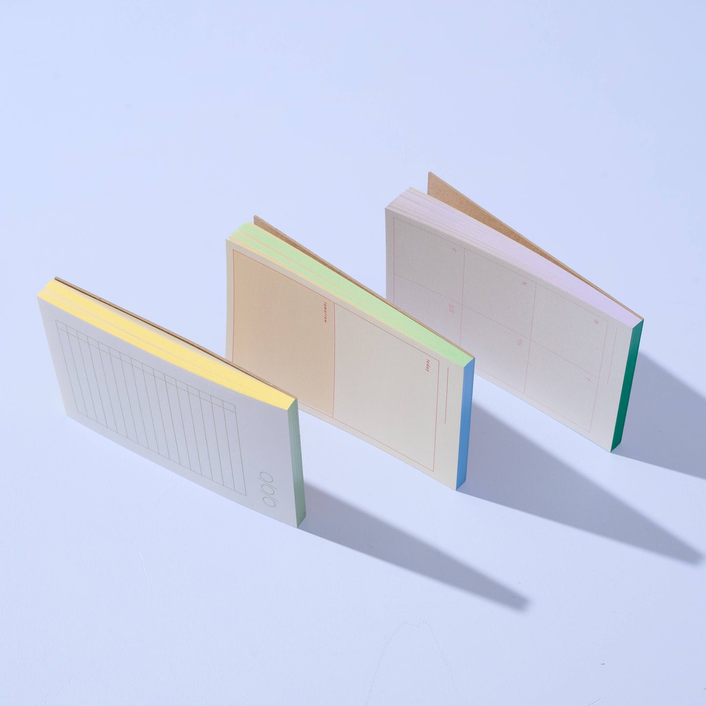 Riso printed notepad with brightly colored hand-painted edges. Each pad is printed on high-quality paper stock and artfully crafted by hand in our studio.