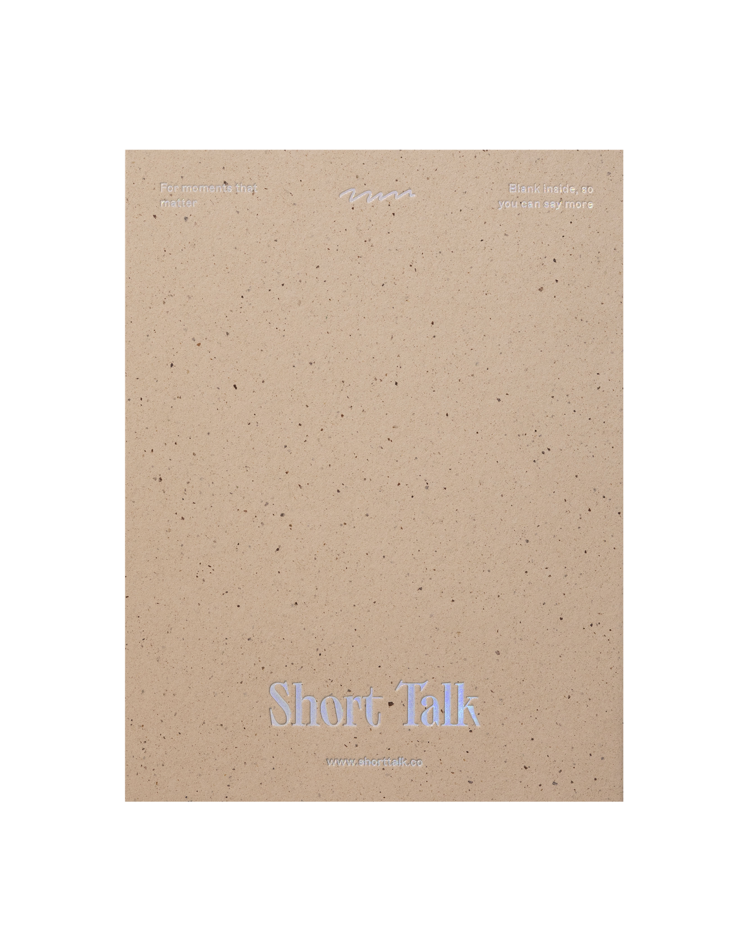 Printed on a thick eco-friendly, grainy cacao stock, made from agricultural waste and recycled fibre, and foil stamped copy in a holographic silver. FUN!