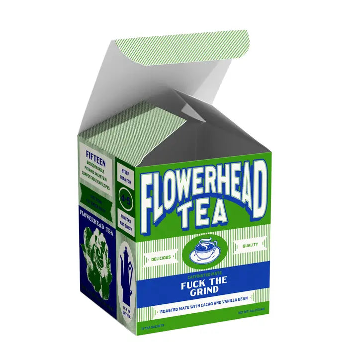 Time to switch up your caffeine routine with this unique and energizing roasted mate. Fuck the Grind is blended with cacao nibs and vanilla for a rich and malty flavor. Enjoy straight up or with milk and honey. Each 100% recyclable box comes with 15 biodegradable wrapped sachet tea bags. These biodegradable woven mesh tea bags are made from soilon, a plastic-free, non-toxic, environmentally friendly material.