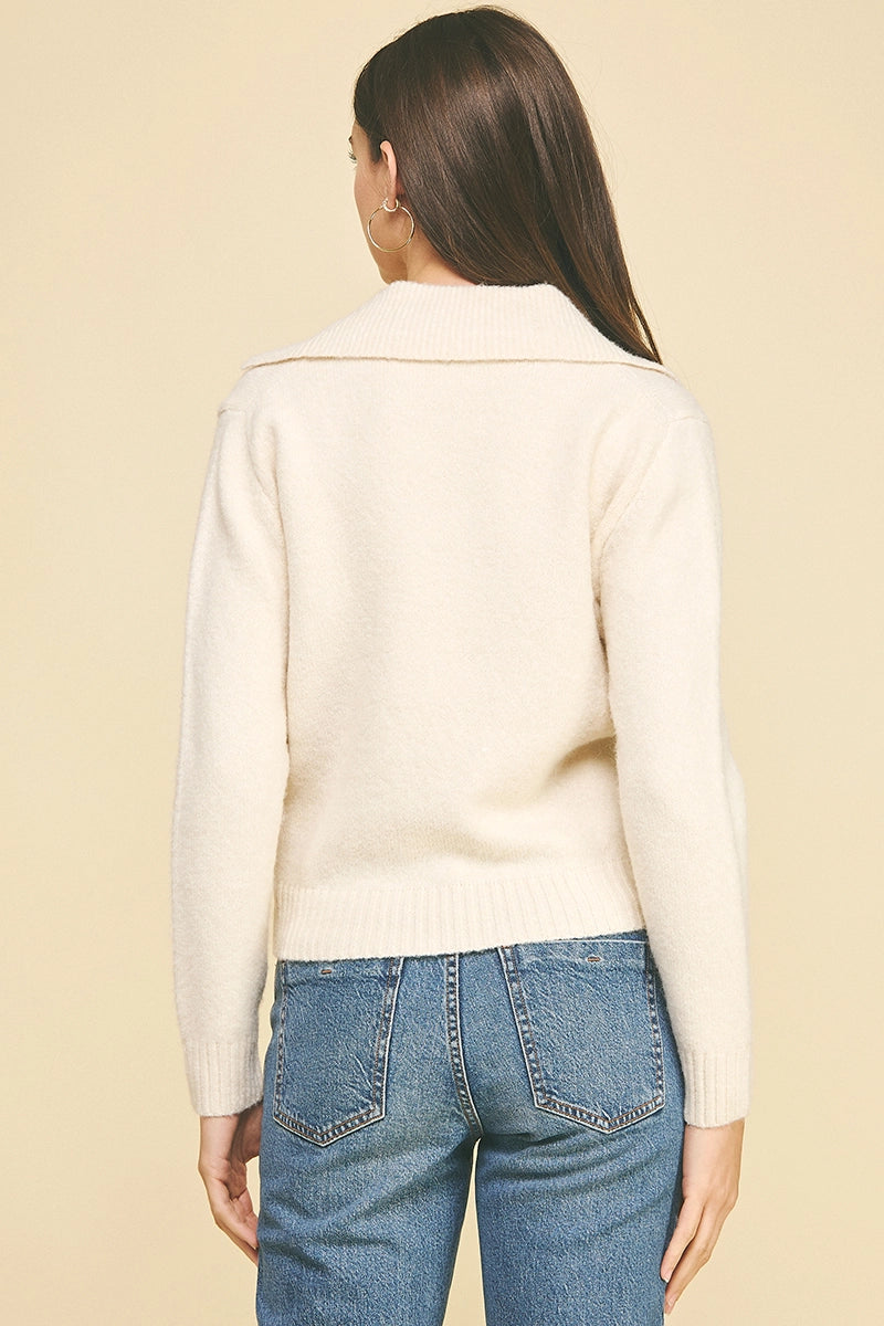 This V-neck collared sweater combines classic style with cozy comfort. Crafted from a soft blend of acrylic, polyester, polyamide, and wool, it offers warmth without bulk. The long sleeves and tailored collar create a polished look perfect for layering or wearing on its own. Easy to care for with hand washing, this sweater is a versatile addition to your wardrobe that effortlessly elevates any outfit. Modeled here in size small for a flattering fit.