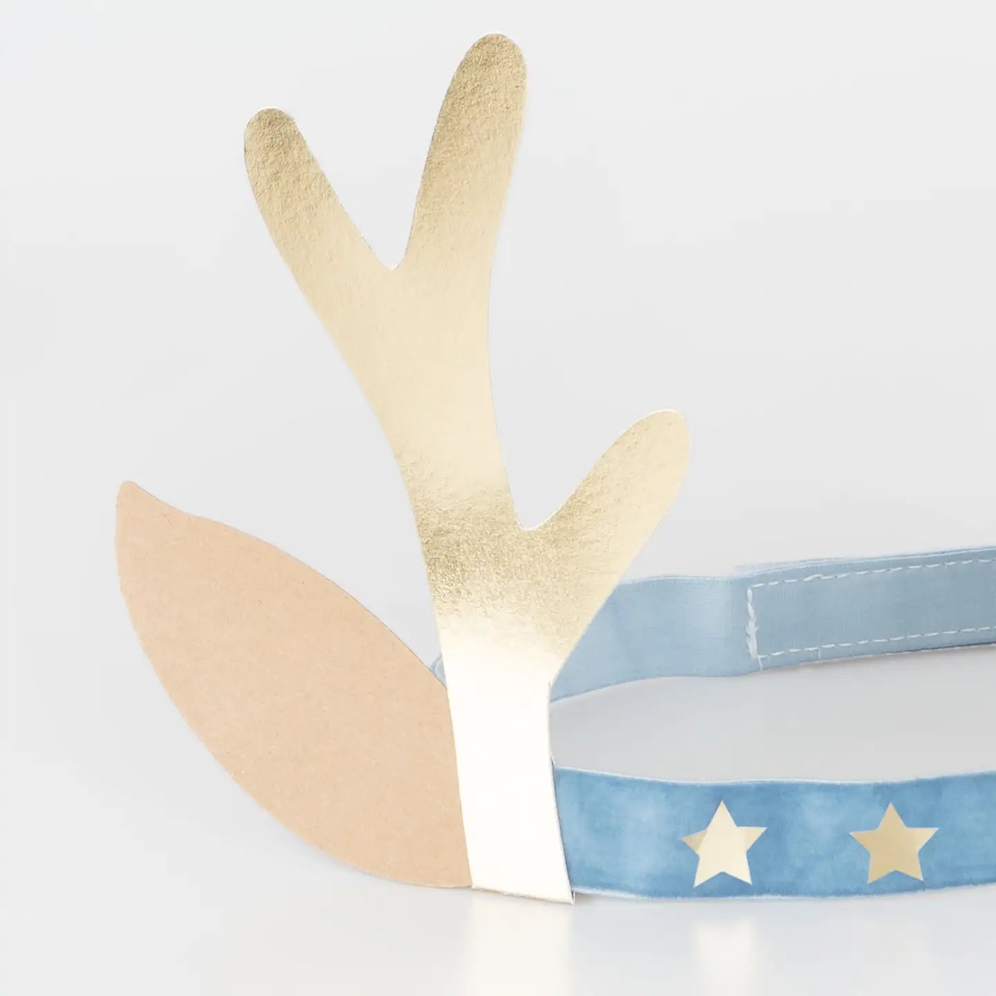 Why wear plain party hats when you, and your guests, can look reindeer remarkable in luxury velvet and gold foil? These fun antler headbands feature velvet elastic details, teamed with gold foil antlers and stars, and kraft paper ears. They're perfect for kids and adults, suitable for ages 3+.