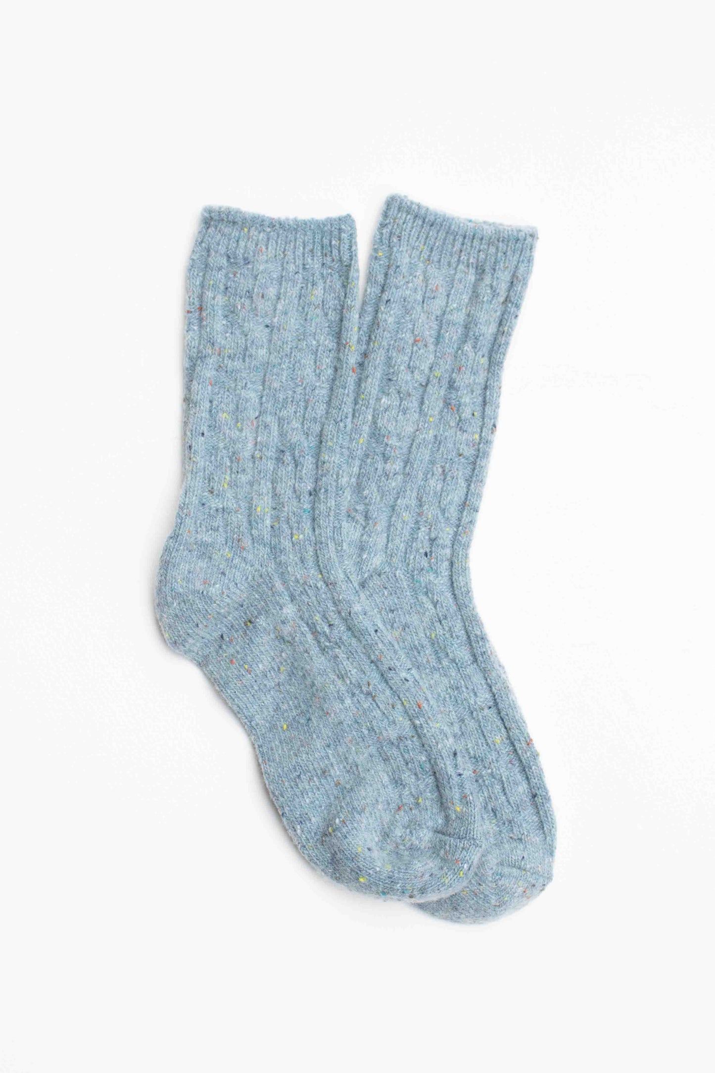 Stay warm and cozy all season long with these charming wool-blend knit socks. Designed with a soft ribbed texture and colorful speckled yarn, they add a touch of vintage warmth to any outfit.